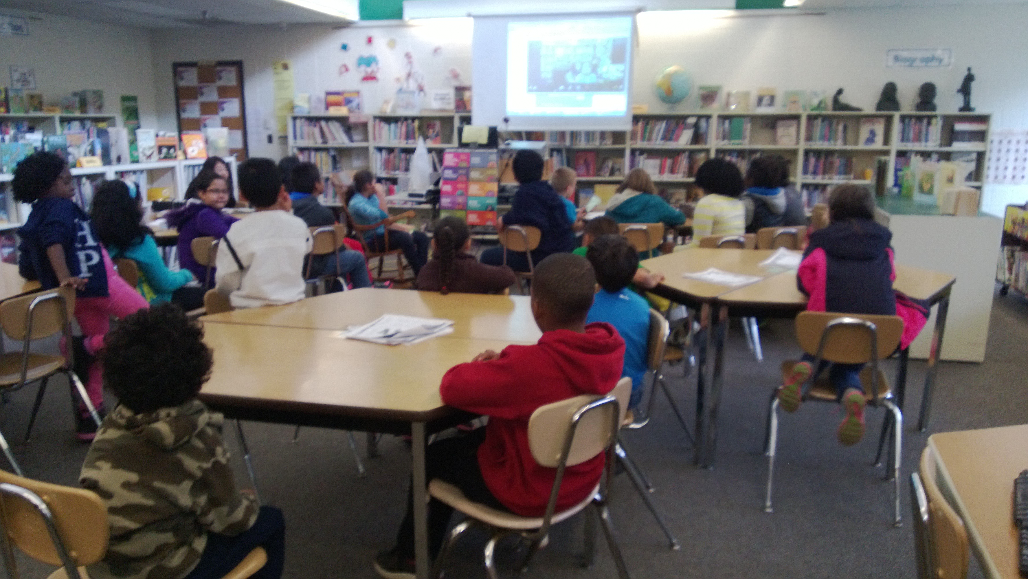 We Skyped with elementary schools in Iowa, Texas, Vermont, Wisconsin, and Howard County, Maryland (thanks, Matthew – The Busy Librarian). Each video chat was filled with enthusiastic students, teachers, and media specialists. We learned facts about the states and shared many original poems, riddles, and also two voice poems “Cricket” and “Grasshopper” from Joyful Noise by Paul Fleischman. We read together selections from Poem in My Pocket by Bobbi Katz, “Whistling” by