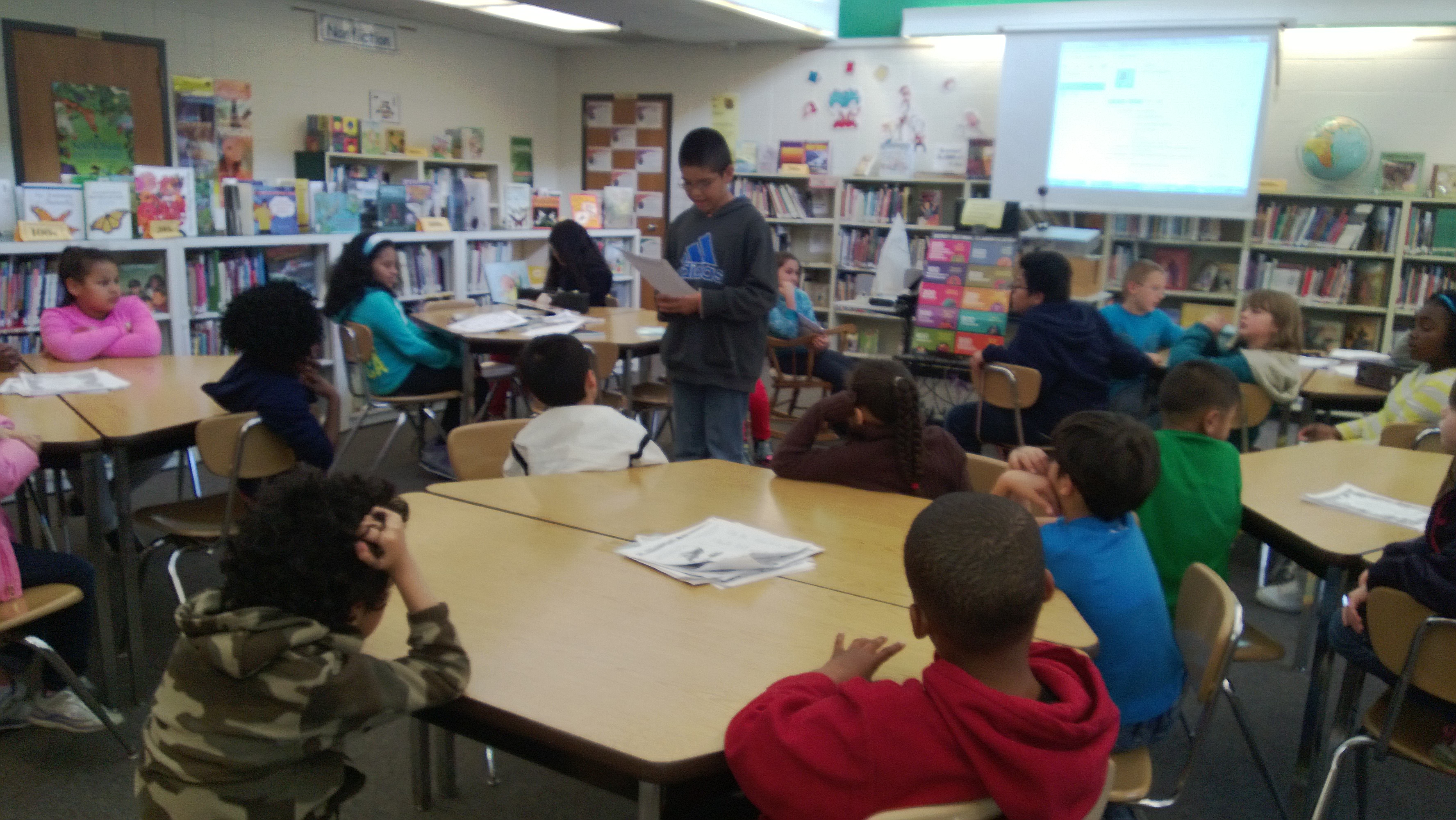 of course)! When one of our video chat sessions fell through because of a scheduling glitch, one of my Clopper Mill 5th grade classes stepped up at the very last second to to share poems with one of my 1st grade classes – and it was a treat for both classes! My students shared a wide variety of poems — from silly poems about hot dogs and messy bedrooms to Harriet Tubman and the Underground Railroad. What an awesome three days! Can’t wait for next year’s Poem in Your Pocket Day!