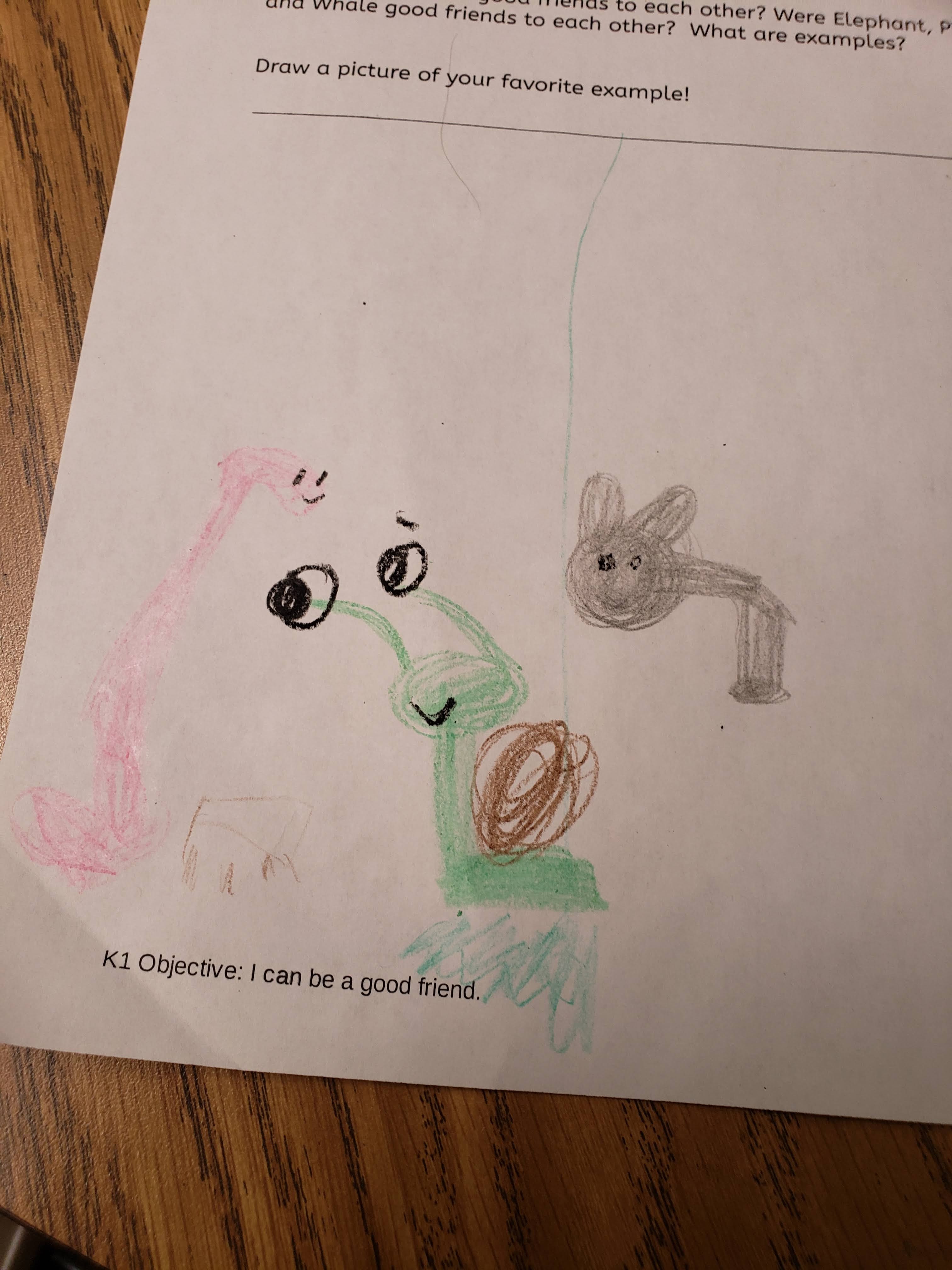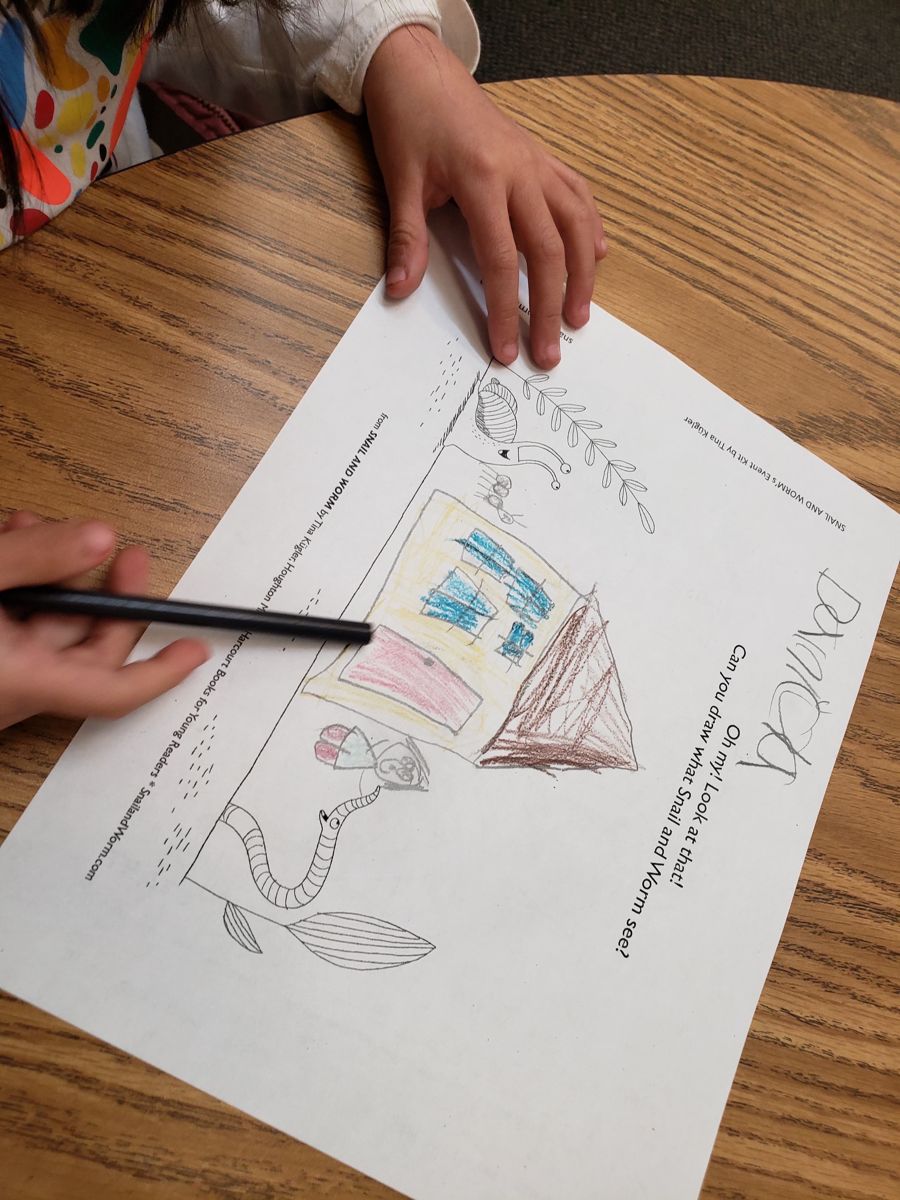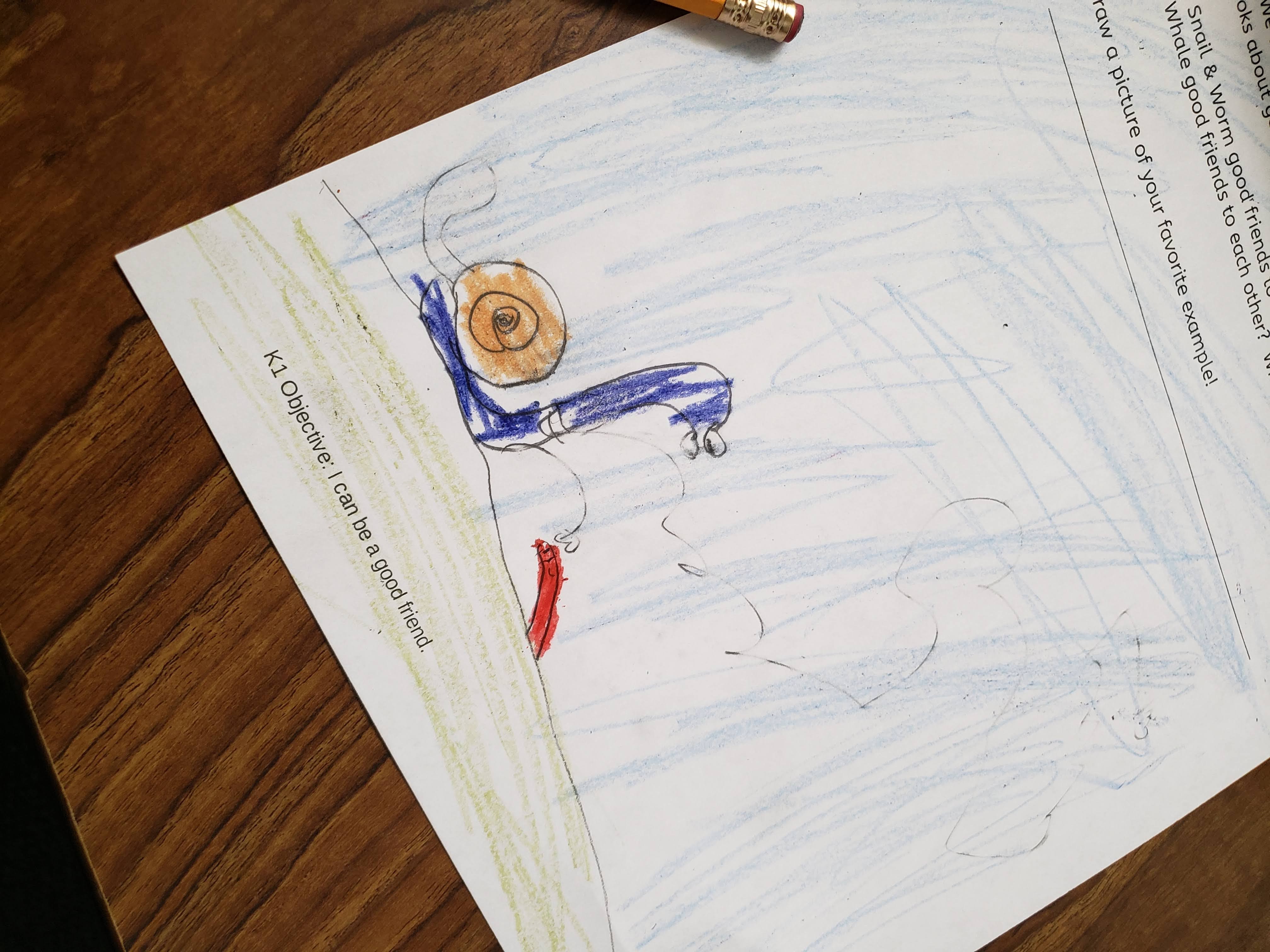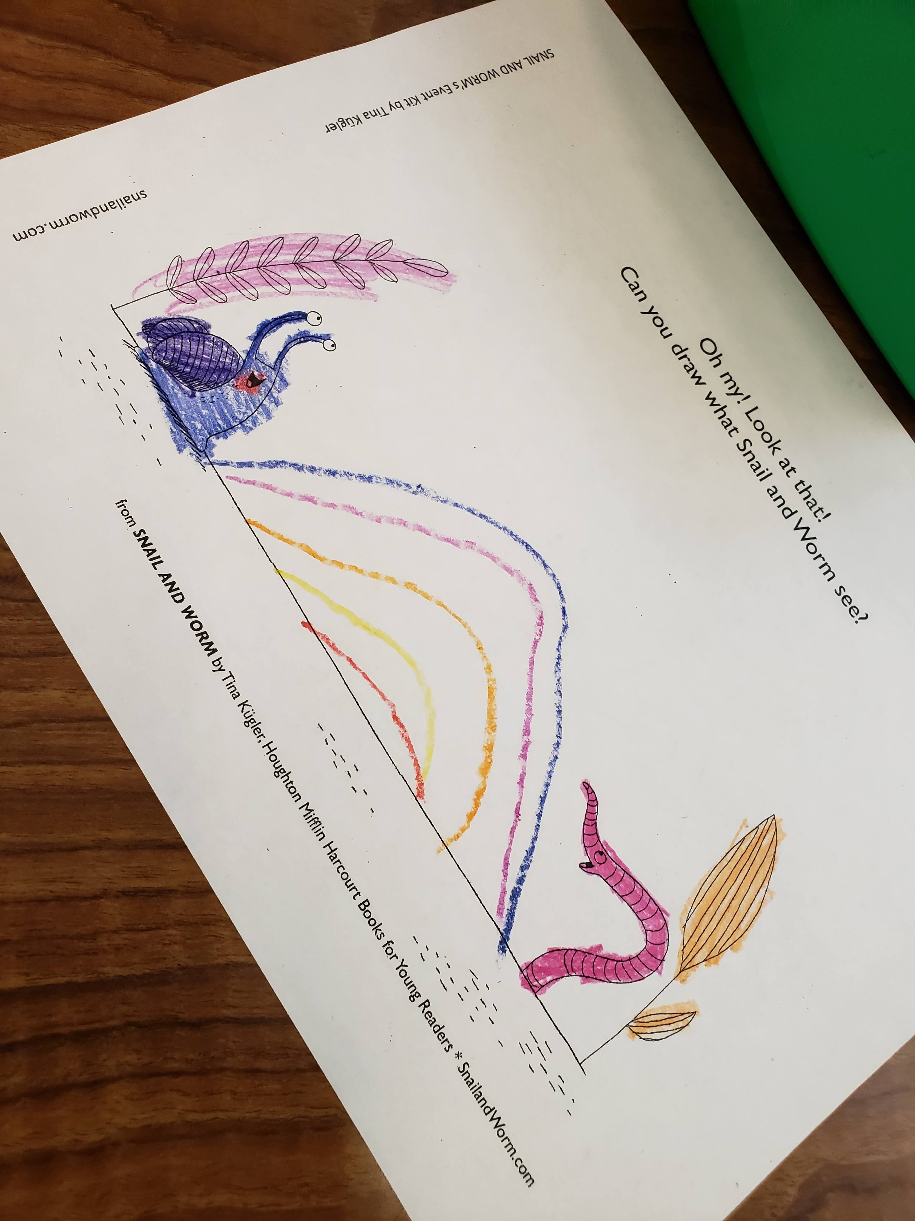 The first week, my lesson was entitled, “What is Friendship?” and the big question was, “What does it mean to be a good friend?” In the lesson I used the wonderful PebbleGo article, Making New Friends, and the books My New Friend is So Fun! by Mo Willems and Snail and Worm Again by Tina Kügler. My students and I had insightful discussions about friendship and specific ways in which the characters were good friends to each other. We also had a great time creating snail art!