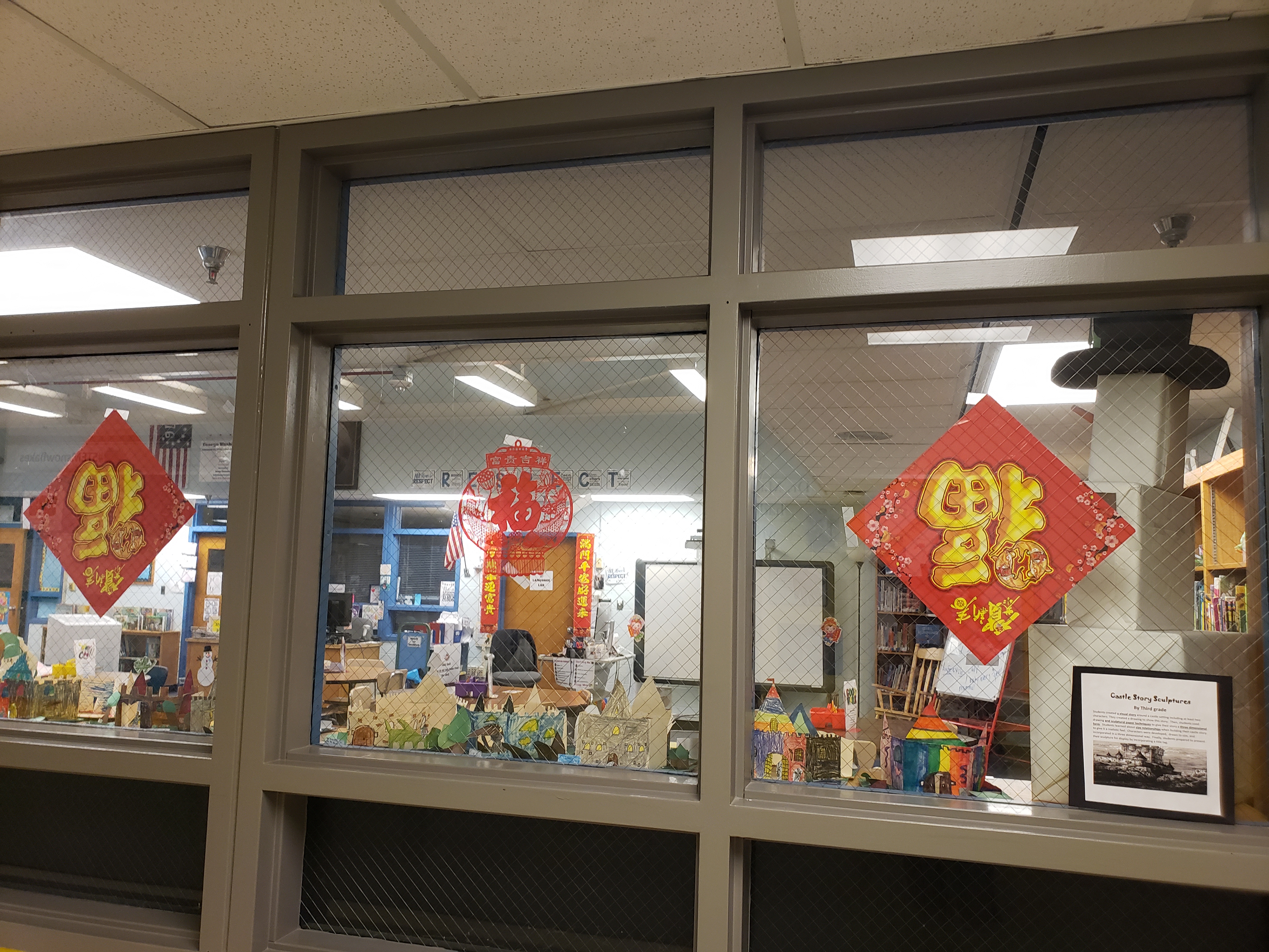 Just as I did with my Mid-Autumn Festival lesson in September, I consulted one of my colleagues, Chanru, who is Chinese-American, to have her review my Chinese New Year lesson for authenticity and accuracy. She gave me positive feedback, and also asked if she might bring in Chinese New Year decorations to help me decorate the library. While we hung the decorations, she explained what the characters on the banners and window clings meant. She has been an amazing primary resource to me!