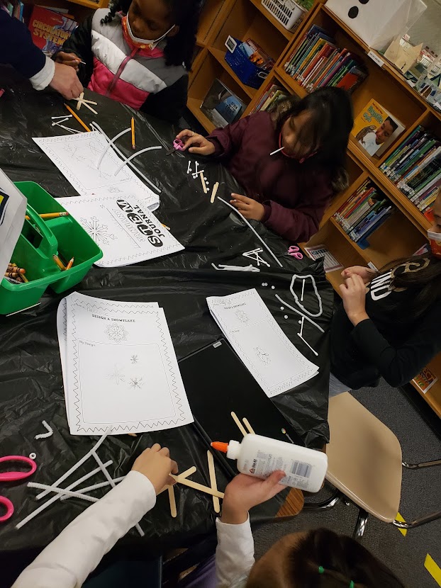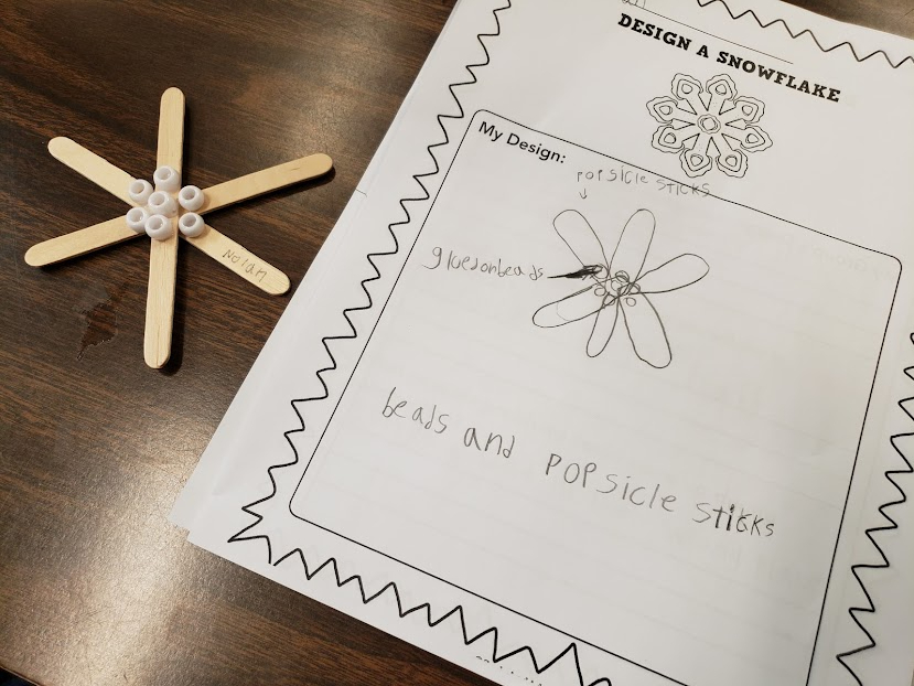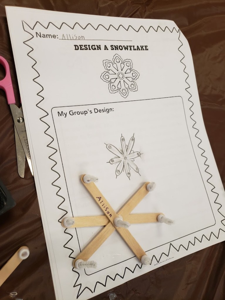 Although I touched on the social emotional aspect of Wilson’s story, I really hoped to get my students excited about the fascinating process of snowflake’s creation. As I was creating my lesson, I was very excited to discover the Carly and Adam’s Snowflake Bentley (literacy-based) STEM Activity and related Design a Snowflake STEM Challenge in their Seasonal STEM Challenges library (January and Winter STEM Challenges).