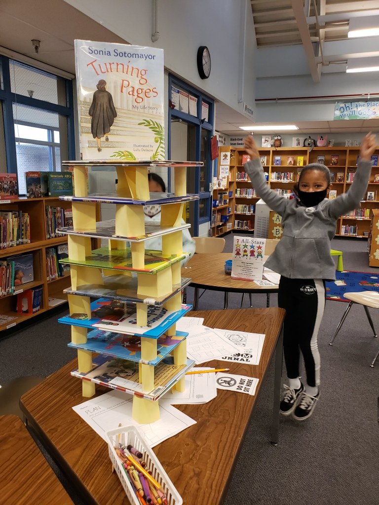 Because I wanted to make a hallway display of their snowflakes, I combined the two challenges and shared them with my 3rd and 4th grade students. It was a multi-week lesson. During the first lesson, we read Snowflake Bentley, studied some of Bentley’s photos, and watched videos about Wilson’s photography and the process of snowflake creation. In the second lesson we reviewed symmetry, watched a video about high-speed snowflake photography, and began the snowflake design process. In the last lesson we reviewed the engineering design process to allow my young engineers plenty of time to design, reflect, and create their snowflakes.