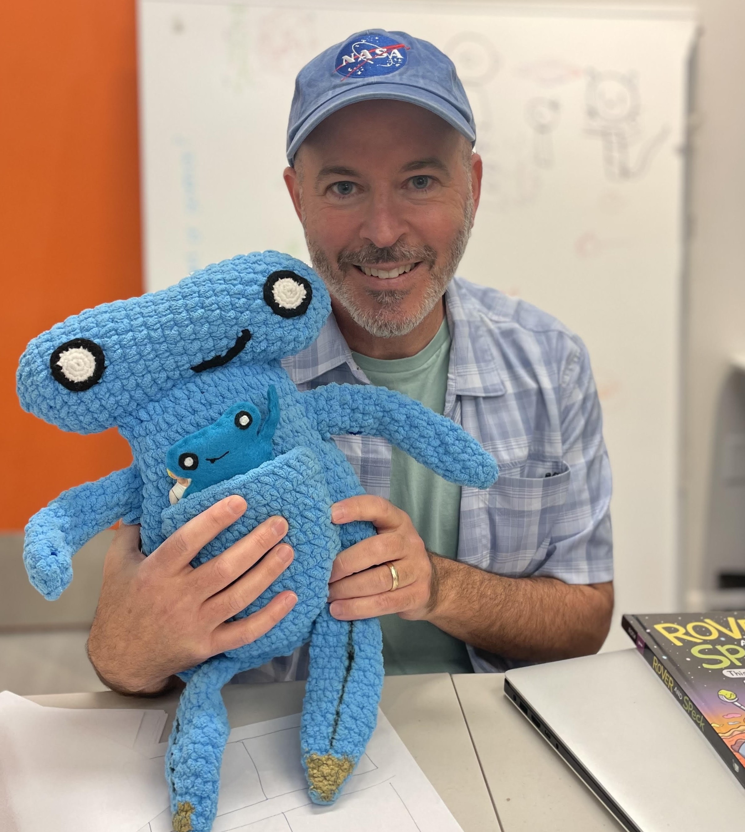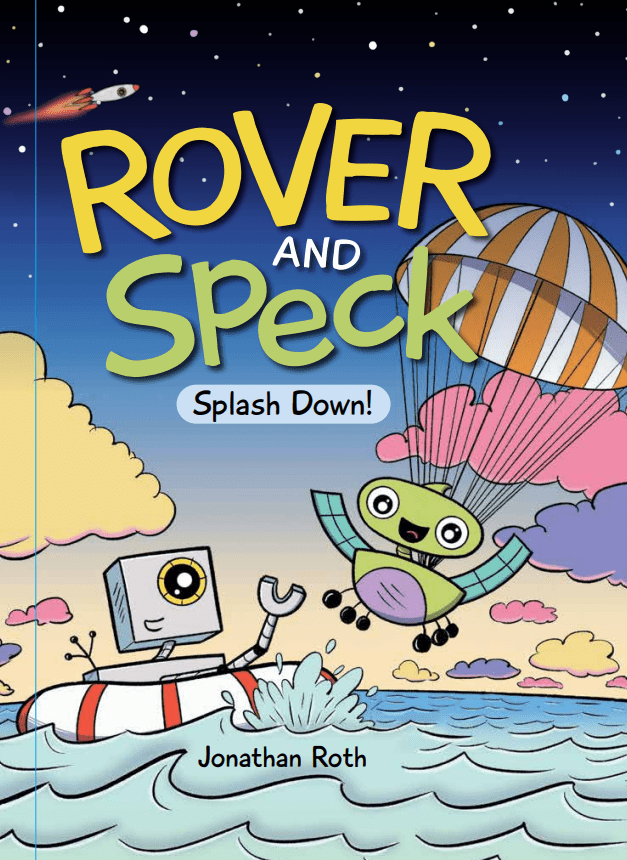 I met Jonathan Roth when he presented his chapter book series Beep and Bob at the Gaithersburg Book Festival in 2019, and found out that he was an art educator in the same school system as me. Since then we have crossed paths several times, and am excited to share his newest book with you – Rover and Speck: This Planet Rocks – a full color graphic novel for young readers. The second in this series, Rover and Speck: Splash Down, publishes in October 2023.