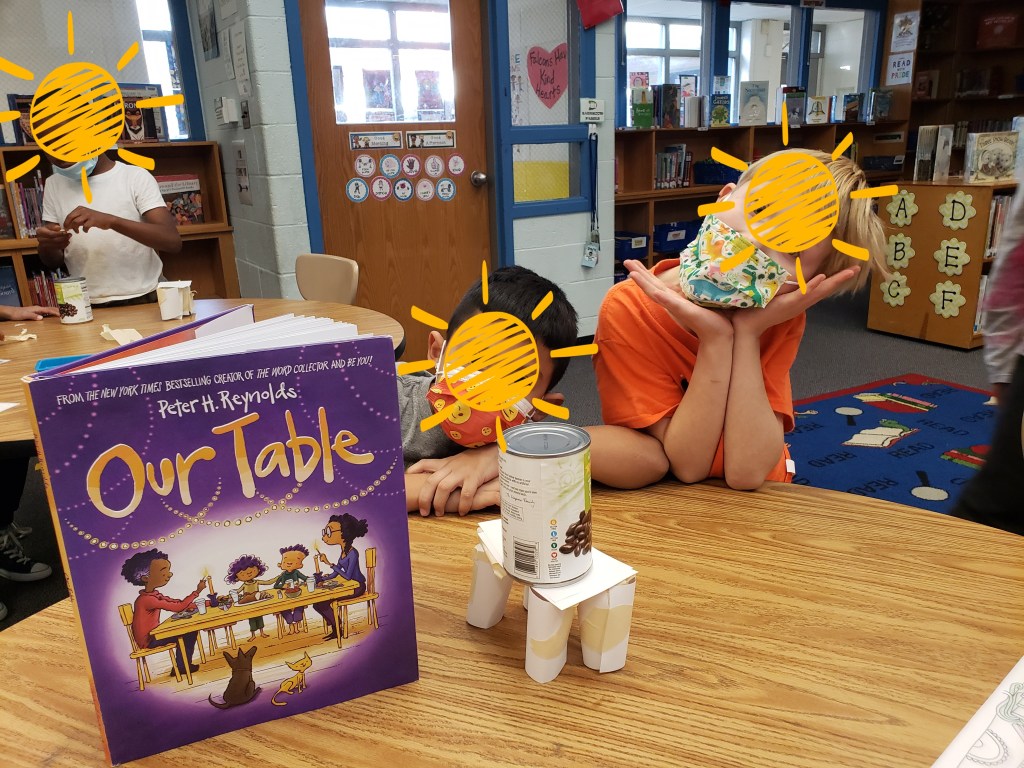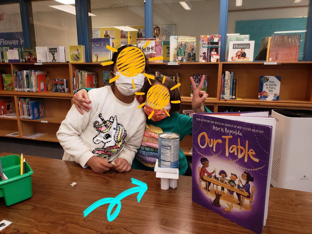 Because I wanted to make a hallway display of their snowflakes, I combined the two challenges and shared them with my 3rd and 4th grade students. It was a multi-week lesson. During the first lesson, we read Snowflake Bentley, studied some of Bentley’s photos, and watched videos about Wilson’s photography and the process of snowflake creation. In the second lesson we reviewed symmetry, watched a video about high-speed snowflake photography, and began the snowflake design process. In the last lesson we reviewed the engineering design process to allow my young engineers plenty of time to design, reflect, and create their snowflakes.
